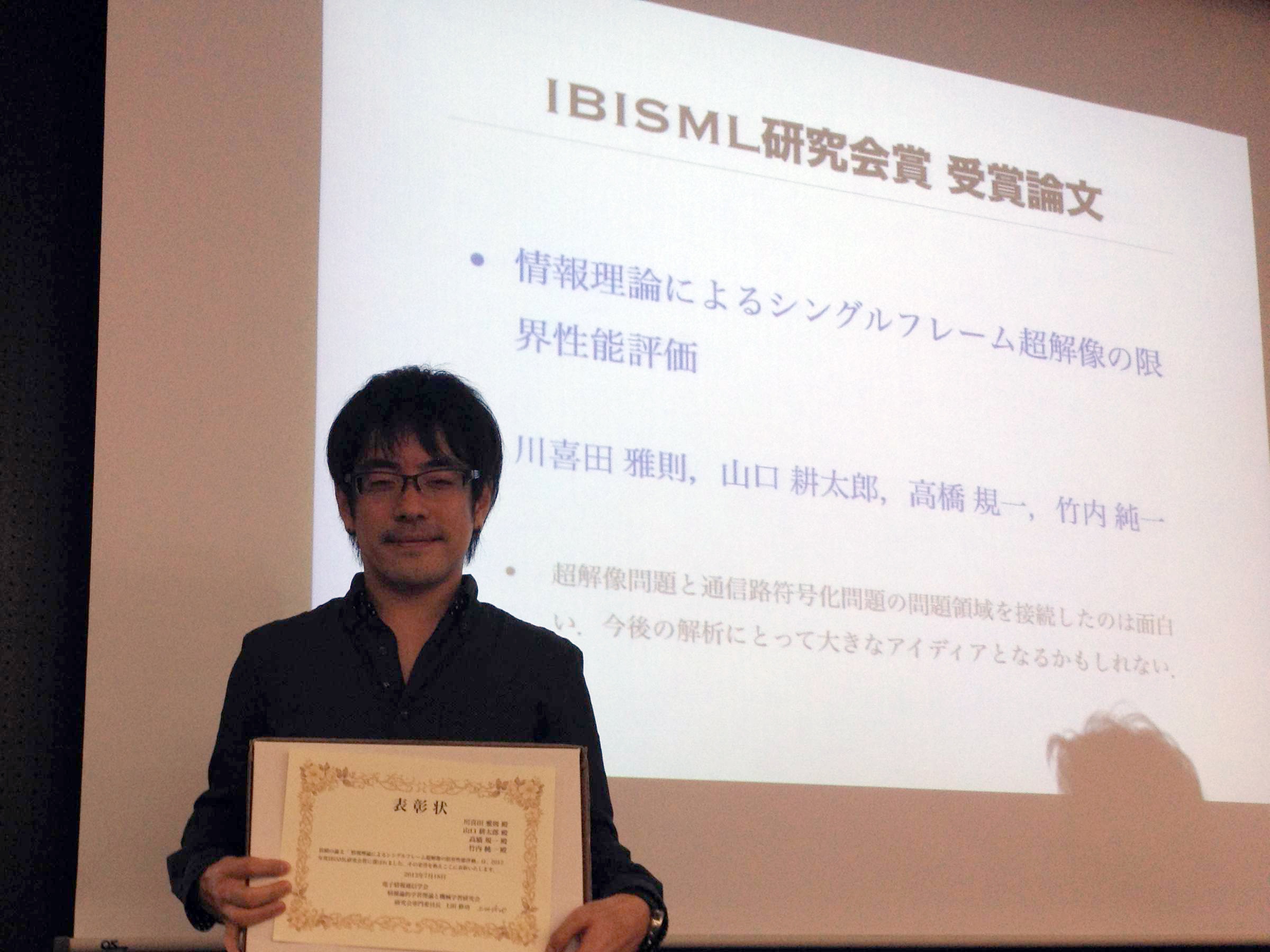 授賞理由:超解像問題と通信路符号化問題の問題領域を接続したのは面白い.今後の解析にとって大きなアイディアとなるかもしれない.